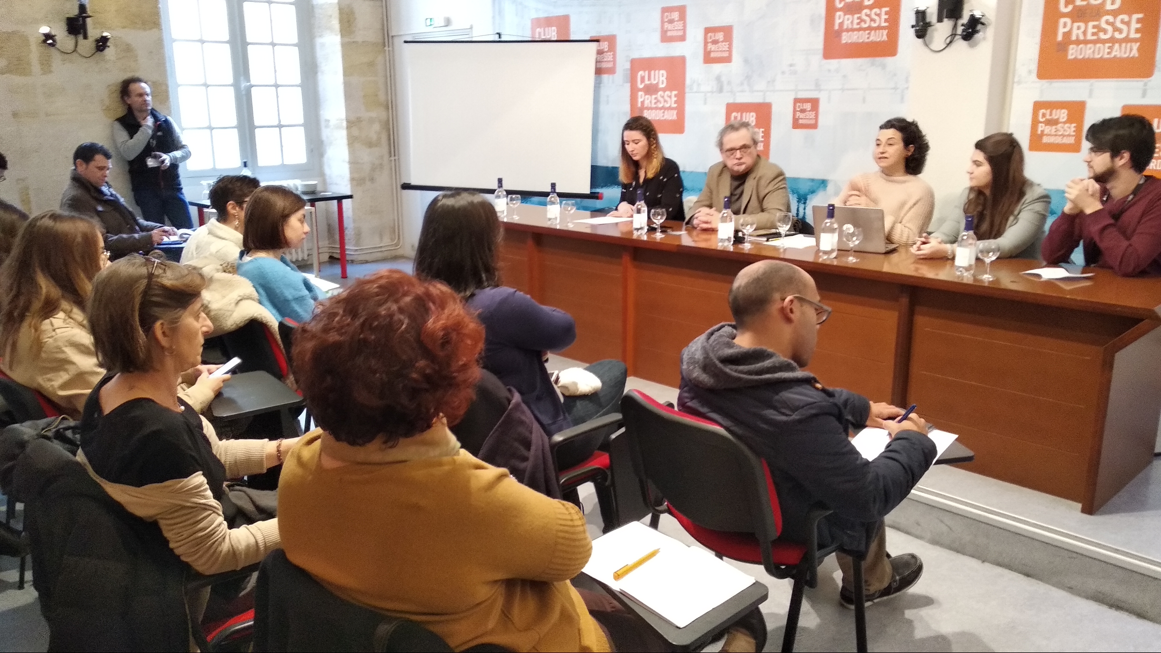 Le Club a accueilli les étudiants organisateurs et leurs professeurs accompagnateurs, Alain Escadafal, directeur de l’UFR Sciences des Territoires et de la Communication de l’Université Bordeaux Montaigne et Valérie Génébès co-responsable du Master Médiations des Sciences.