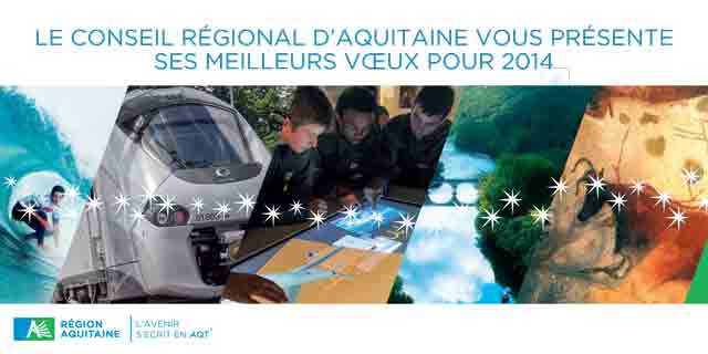 Save the date : Alain Rousset présentera ses vœux à la presse le 9 janvier 2014 Alain Rousset, président du Conseil régional d’Aquitaine, présentera ses vœux à la presse le jeudi 9 janvier 2014 à 11h00 dans les salons de l’Hôtel de Région, avant d’entamer ses traditionnelles visites dans les départements. Ce sera l’occasion pour lui lire la suite