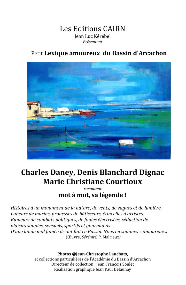 Marie Christiane Courtioux, journaliste, ancienne présidente du Club de la Presse, vient d'écrire avec Charles Daney et Denis B. Dignac, un Petit Lexique amoureux du Bassin d’Arcachon. Cet ouvrage publié aux éditions Cairn, est illustré par des photographies de Jean Christophe Lauchats. Il est présenté au salon « La plage aux…