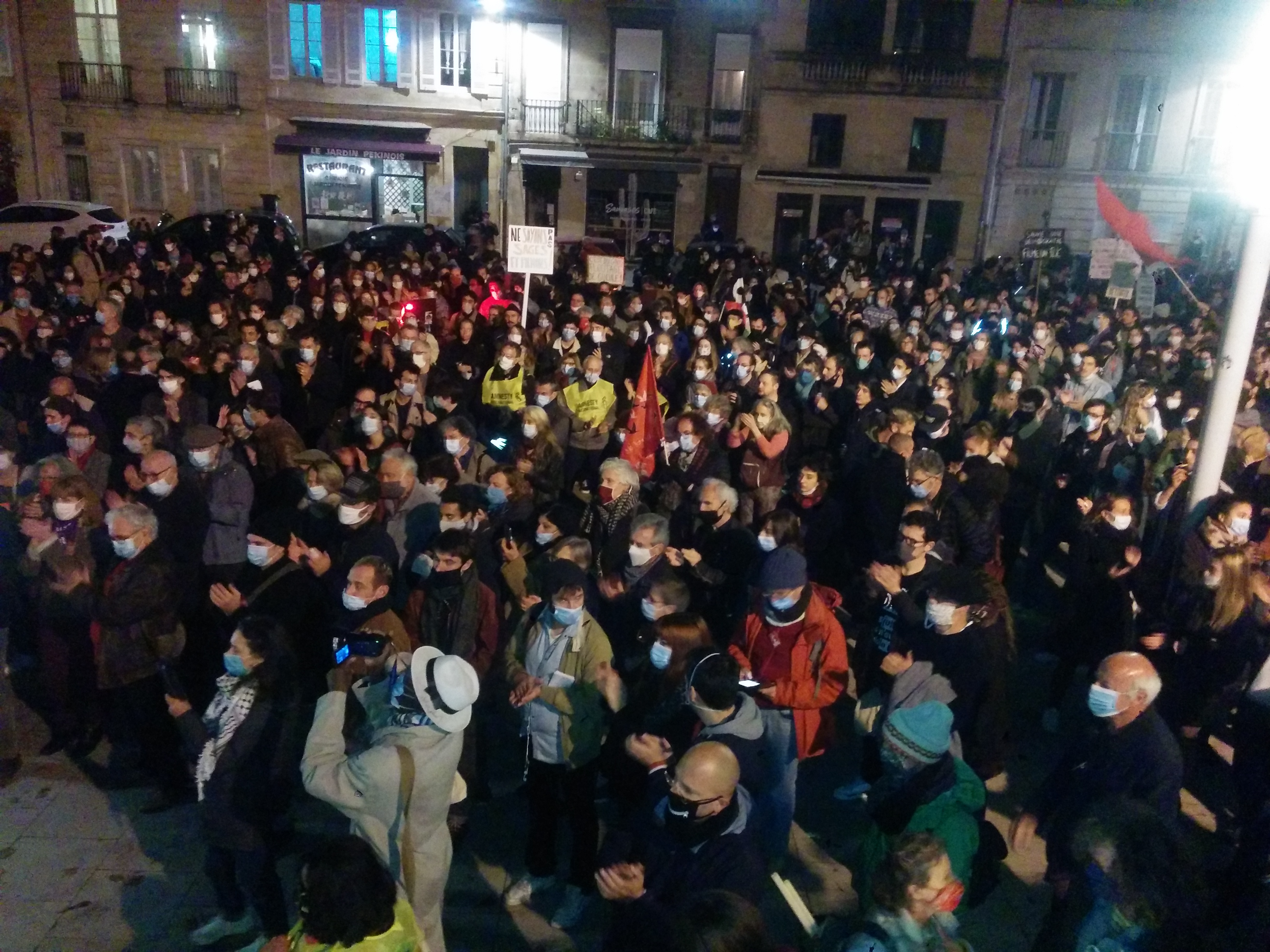 Plusieurs centaines de personnes ont pris part au rassemblement bordelais pour protester contre la proposition de loi « sécurité globale » qui, si elle était votée, limiterait davantage les possibilités d’exercer le métier de journaliste.