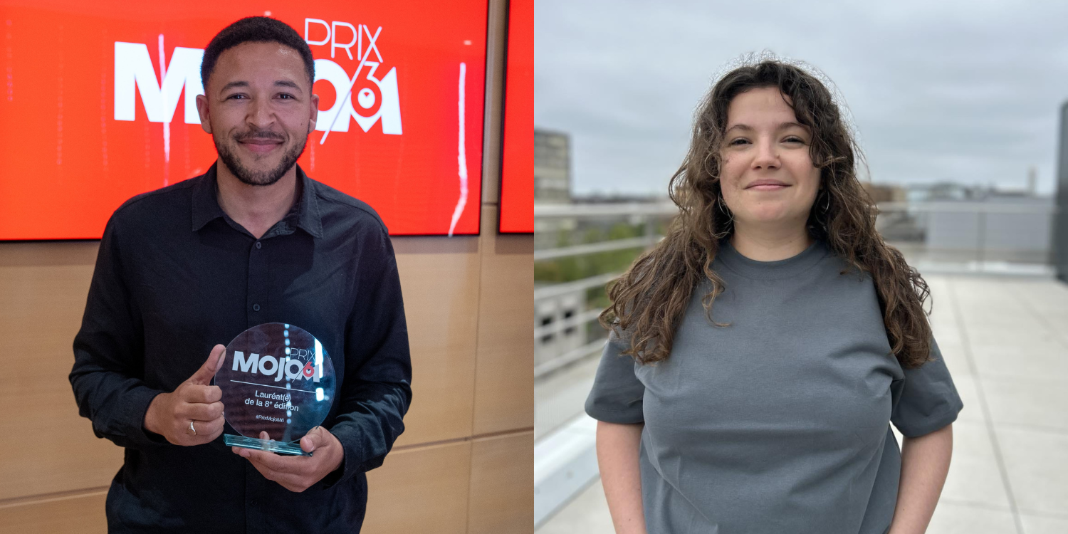 Ami·e·s et étudiant·e·s en 2e année de Master en journalisme de l’IJBA Bordeaux Aquitaine, spécialité Télévision, réuni·e·s au sein du Club junior et bourré·e·s de talent : Emma Guillaume, 25 ans, a décroché le 1er prix de la Bourse AFP Ecoles 2024 et Luigy Lacides, 24 ans, est arrivé en tête de la 8ème édition du Prix MoJo M6. La classe ! Réactions à chaud entre deux reportages.