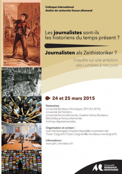 24 et 25 mars 2015 Atelier de recherche franco-allemand Université Bordeaux Montaigne; MSHA ( salle Jean Borde, Pessac) Les journalistes sont-ils les historiens du temps présent Programme definitif 20022015