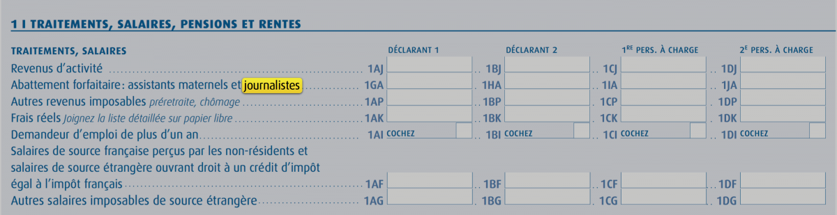 Quelques explications pour peut-être vous épargner de passer trop de temps sur un exercice chronophage. La déclaration de revenus 2017 sous les yeux vous vous demandez à quoi correspond la ligne 1GA dans la partie consacrée aux traitements et salaires. Elle porte, comme écrit, sur l’ « abattement forfaitaire : assistants maternels et journalistes ». Mais encore ?