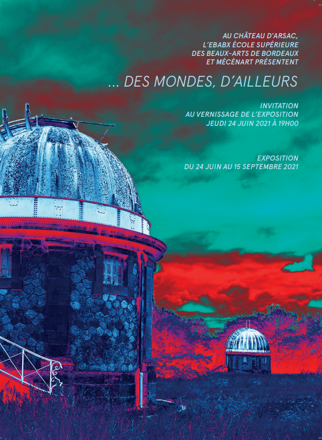 Invitation vernissage de l’exposition jeudi 24 juin à 19h Du 24 juin au 15 septembre 2021 se tient l’exposition …DES MONDES, D’AILLEURS au Château d’Arsac, en appellations Margaux et Haut-Médoc. Cette exposition est le fruit du travail des trois artistes du Pavillon, Résidence de création internationale de l’ebabx école supérieure des beaux-arts de Bordeaux et lire la suite