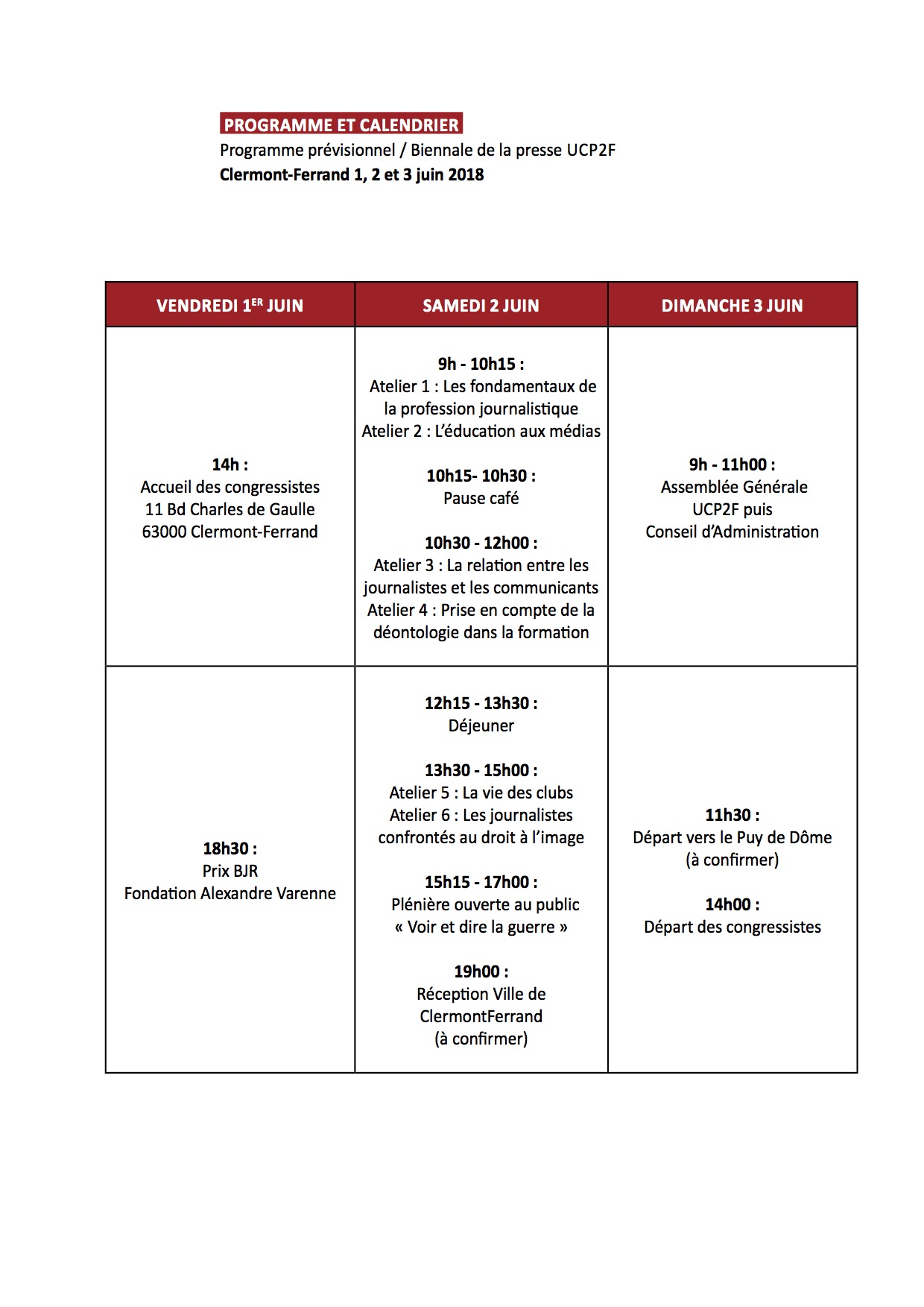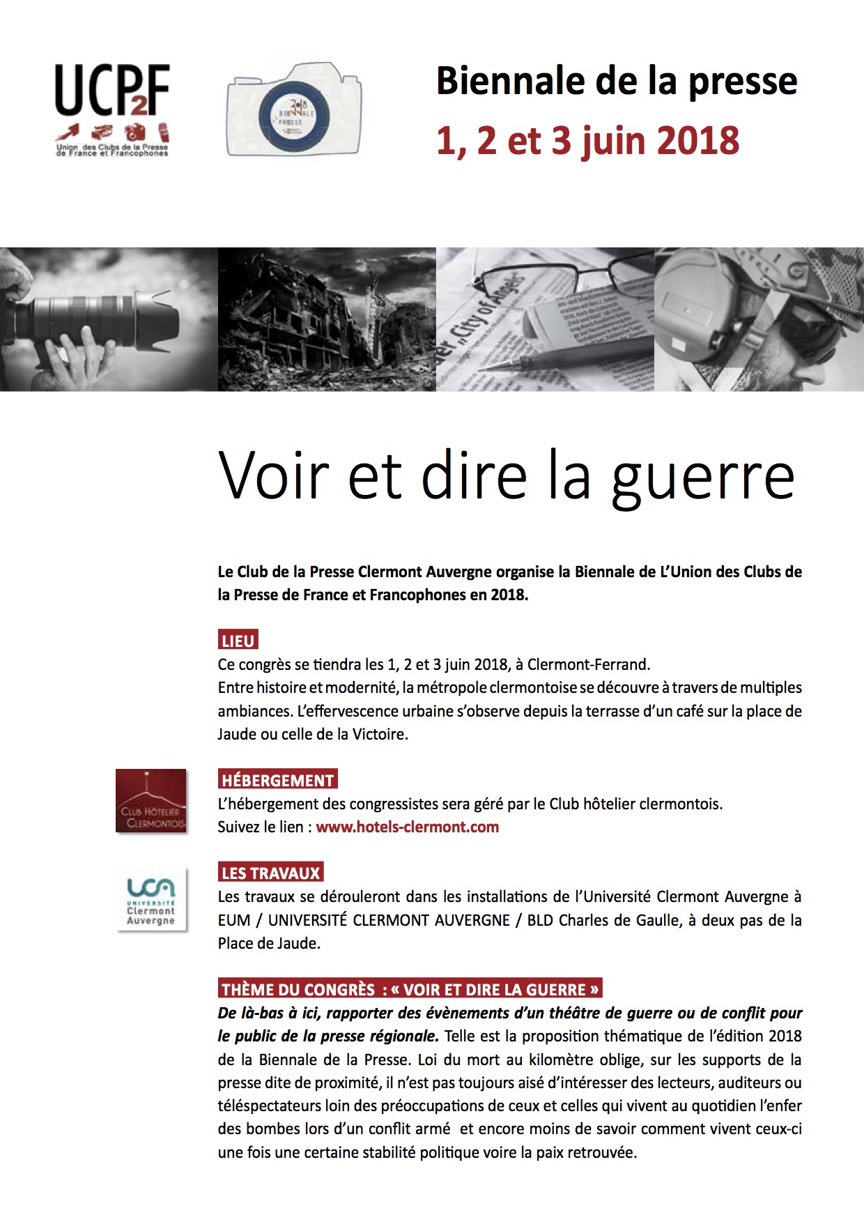 Programme en pdf : clubpresse_programme_biennale2018_bd1 Dossier de presse à télécharger : dossier-de-presse-biennale-de-la-presse-2018-final-1