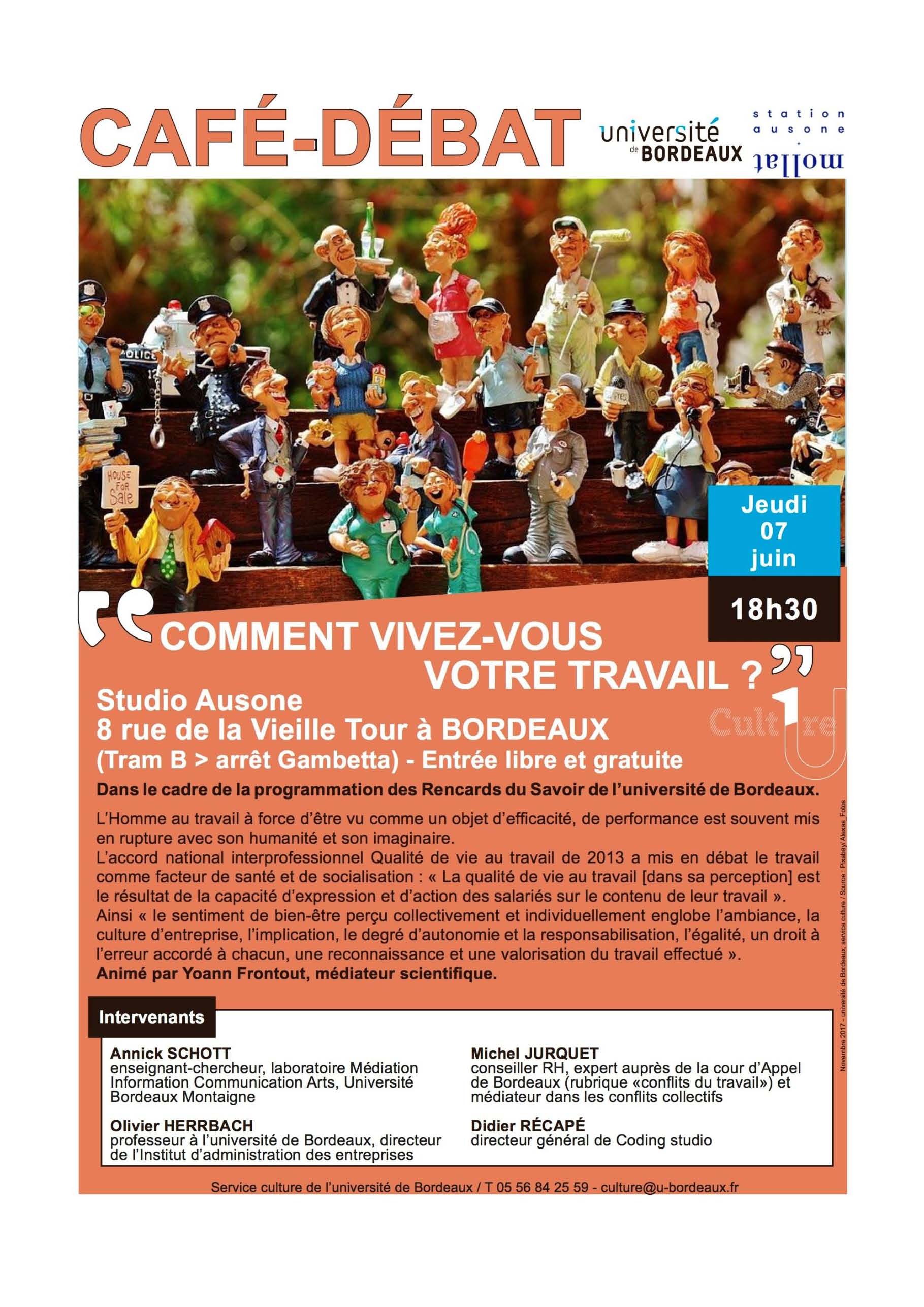 Accueil > Événements > Evénements à l'extérieur > Café-Débat « Comment vivez-vous votre travail ? » à 18h30