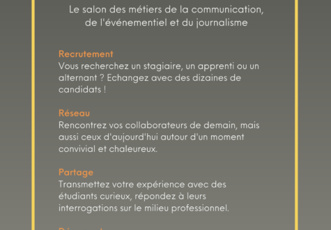 Stratéjic, la junior entreprise de l’Université Bordeaux-Montaigne organise un speed-dating (qualifié de com-dating) autour des métiers de la communication, de l’événementiel et du journalisme, mercredi 23 mars à partir de 17h45, à la Maison des Etudiants de l’Université (arrêt tram B Montaigne-Montesquieu).