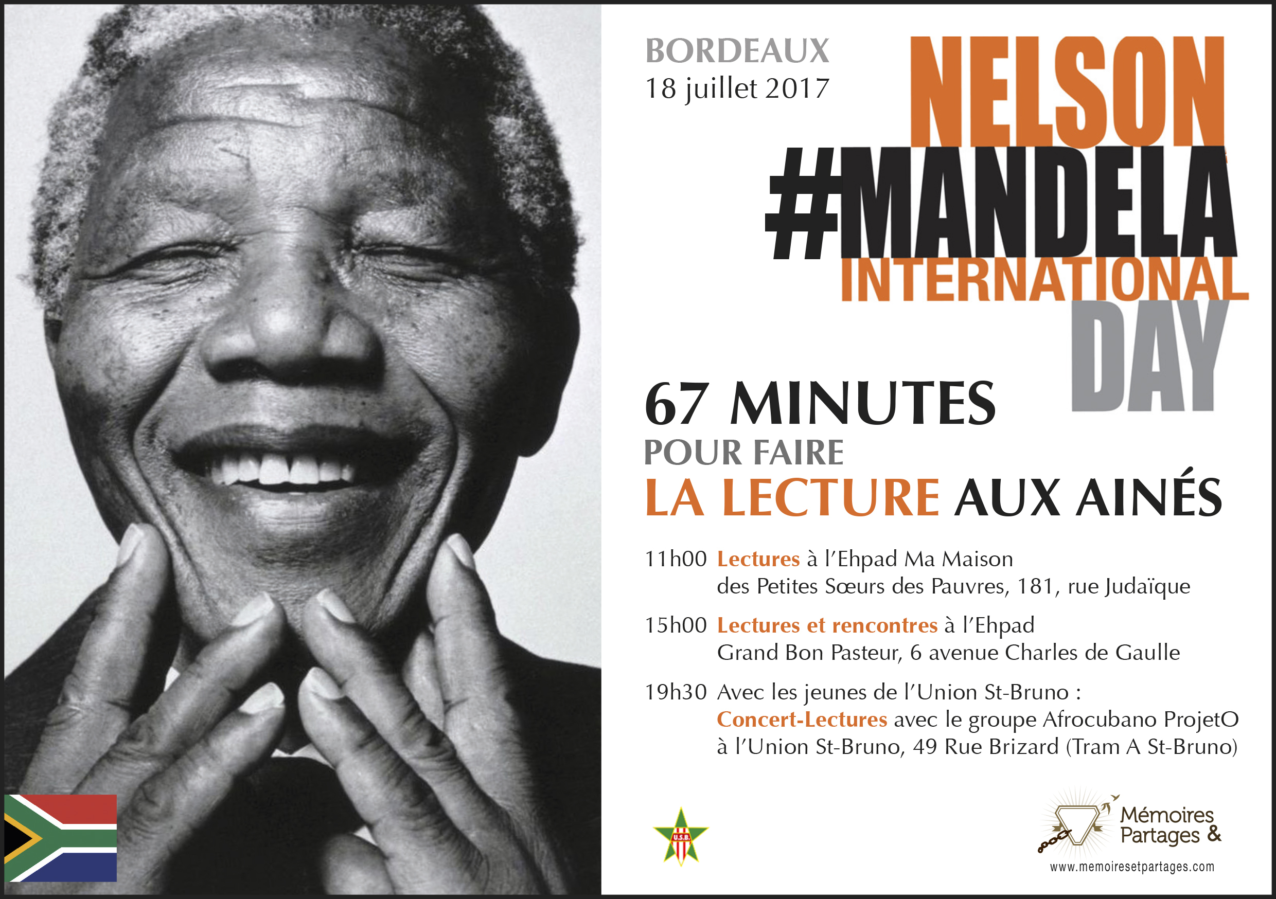 L’association Mémoires & Partages présente la 1ere édition à Bordeaux de la Journée Internationale Nelson Mandela qui aura lieu le 18 juillet prochain.