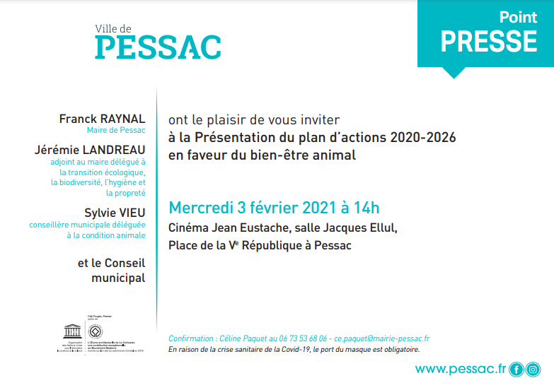 Pièce jointe de l’invitation ici: INVITATION PRESSE PLAN D’ACTIONS BIEN ETRE ANIMAL