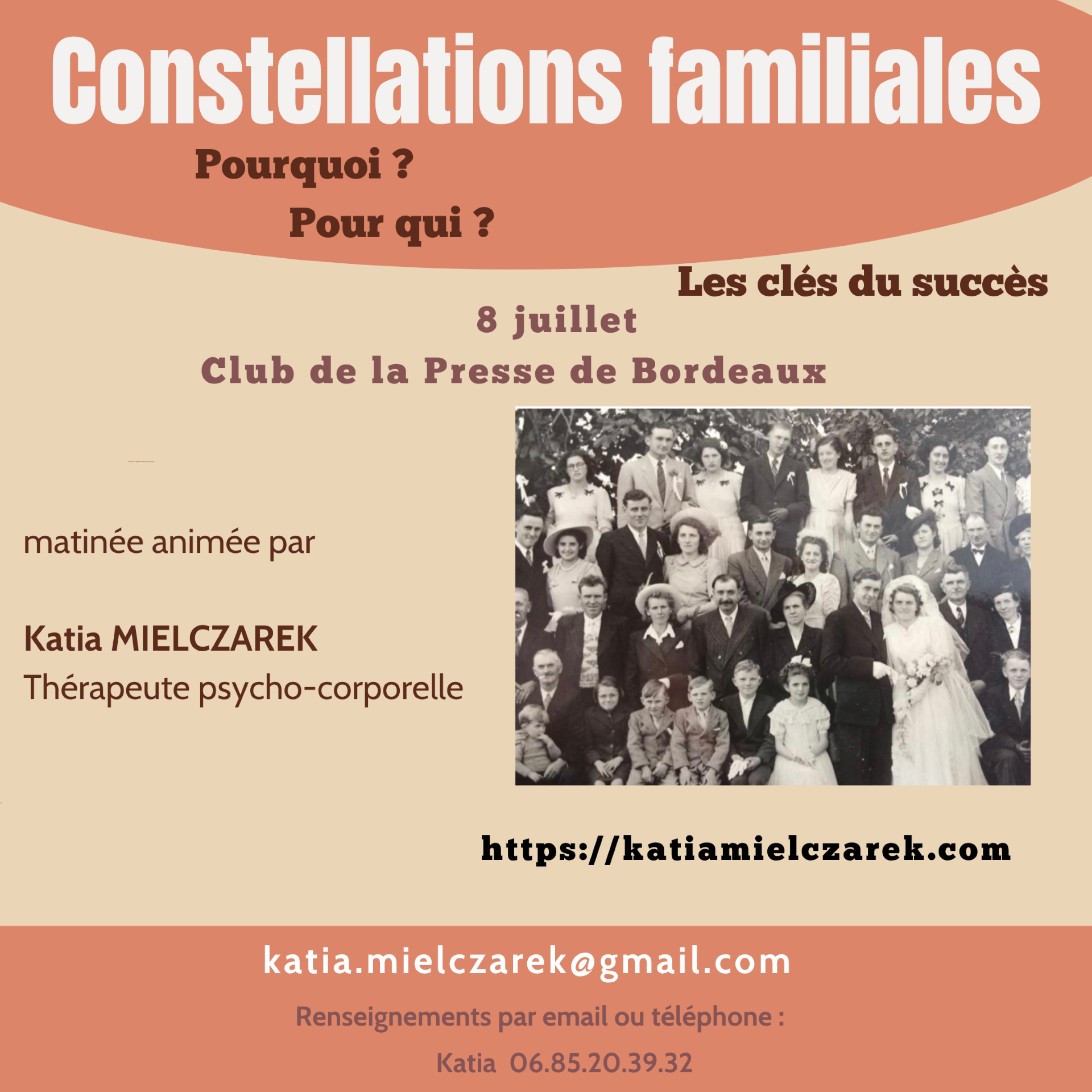 Violences scolaires, burn-out, charge mentale des jeunes parents… les constellations familiales restent encore méconnues du grand public. Venez découvrir cette approche à travers la présentation de la psychothérapeute Katia Mielczarek le mardi 23 septembre à 10h au Club. Elle présentera les clés essentielles pour mieux comprendre le sujet et comment il peut apaiser les tensions familiales ou sociales.