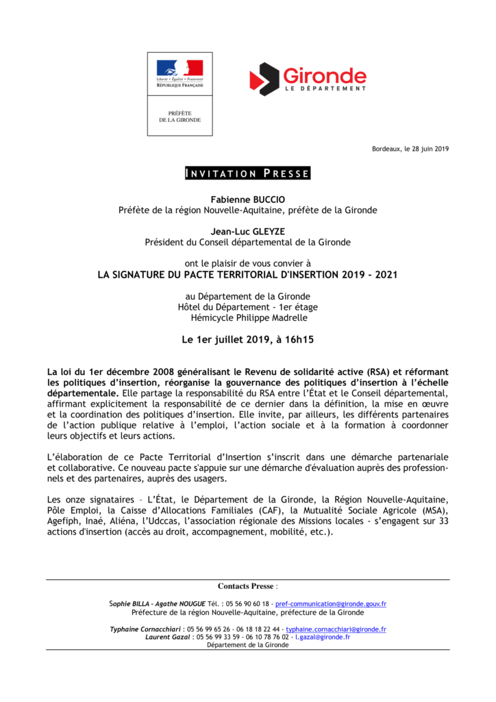 Accueil > Événements > Evénements à l'extérieur > >Invitation presse : Signature du pacte territorial d’insertion 2019-2021, 16H15