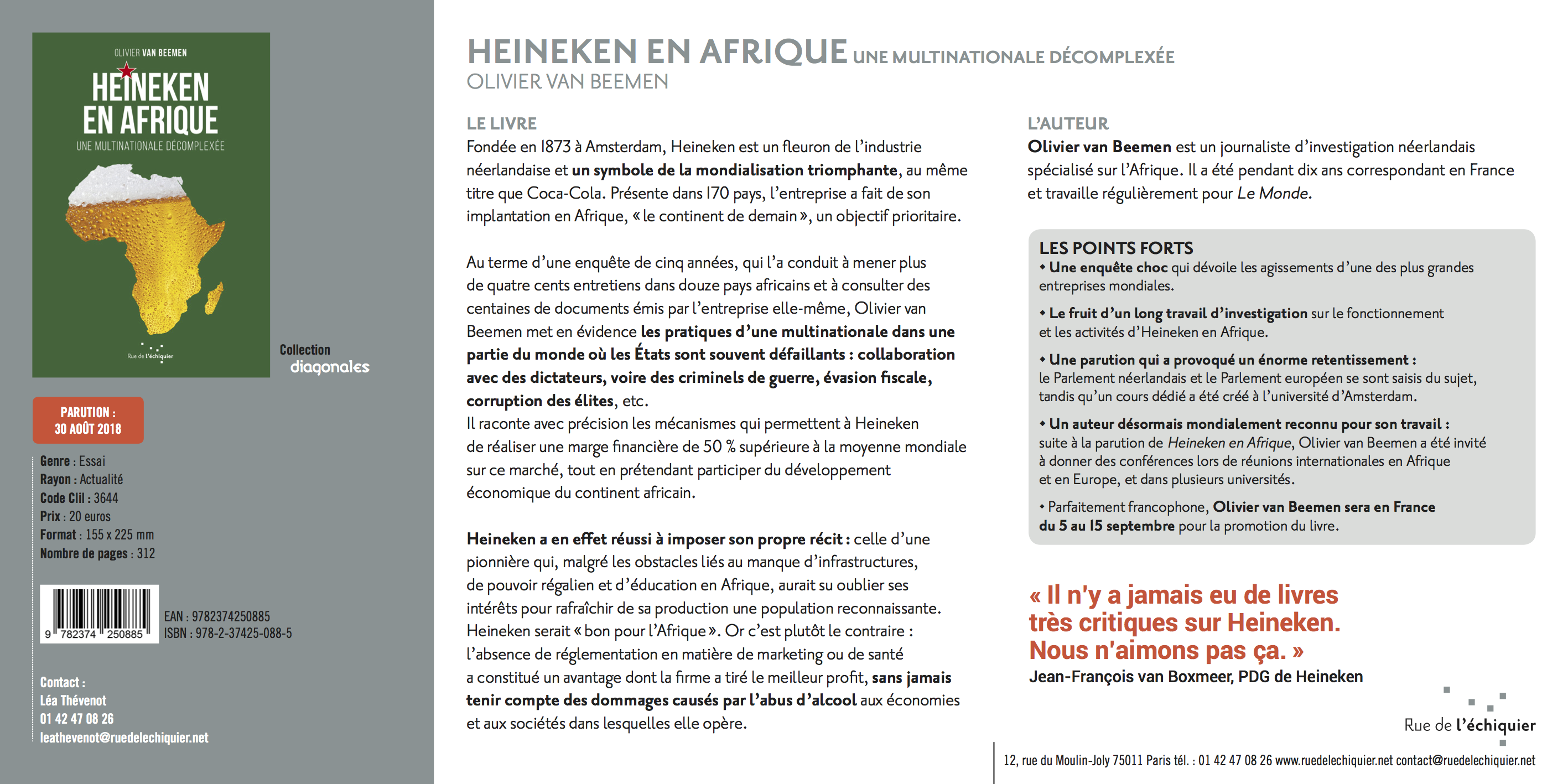 CONTACT PRESSELéa ThévenotPar mail : leathevenot@ruedelechiquier.netPar téléphone : 01 42 47 08 26 / 06 79 44 16 93 ———————————– Fiche livre en pdf : heineken-en-afrique