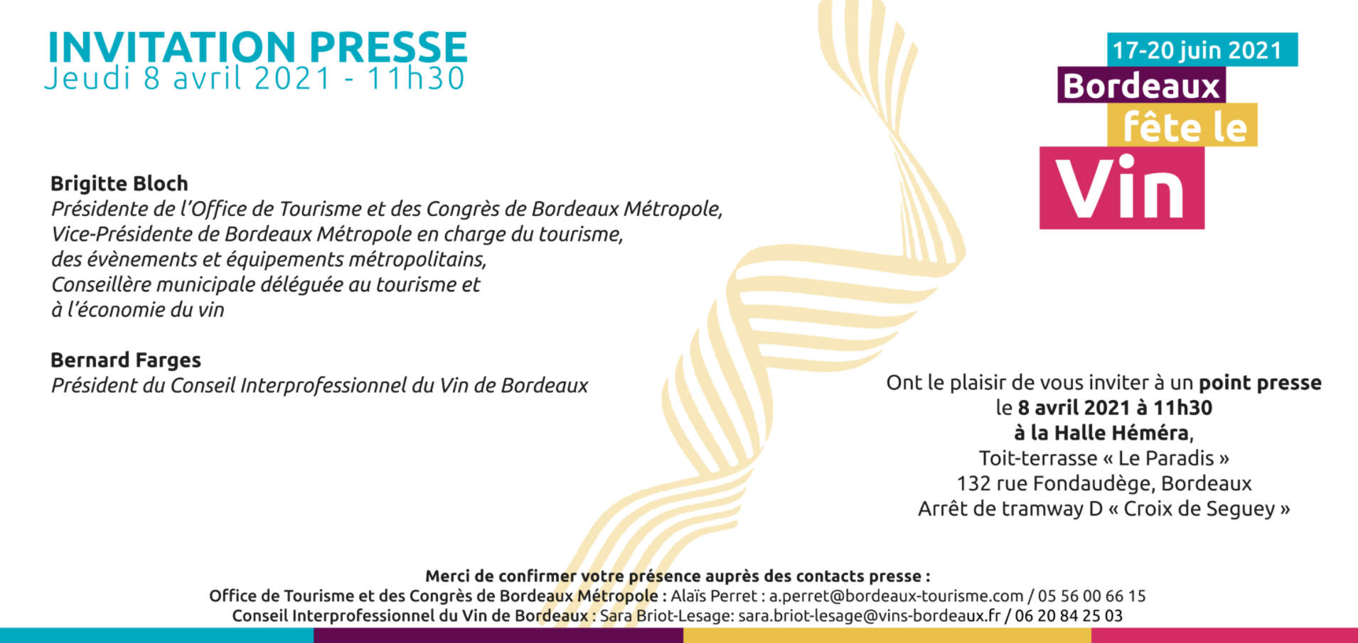 Conseil Interprofessionnel du Vin de Bordeaux : Sara Briot-Lesage – sara.briot-lesage@vins-bordeaux.fr / 06 20 84 25 03
