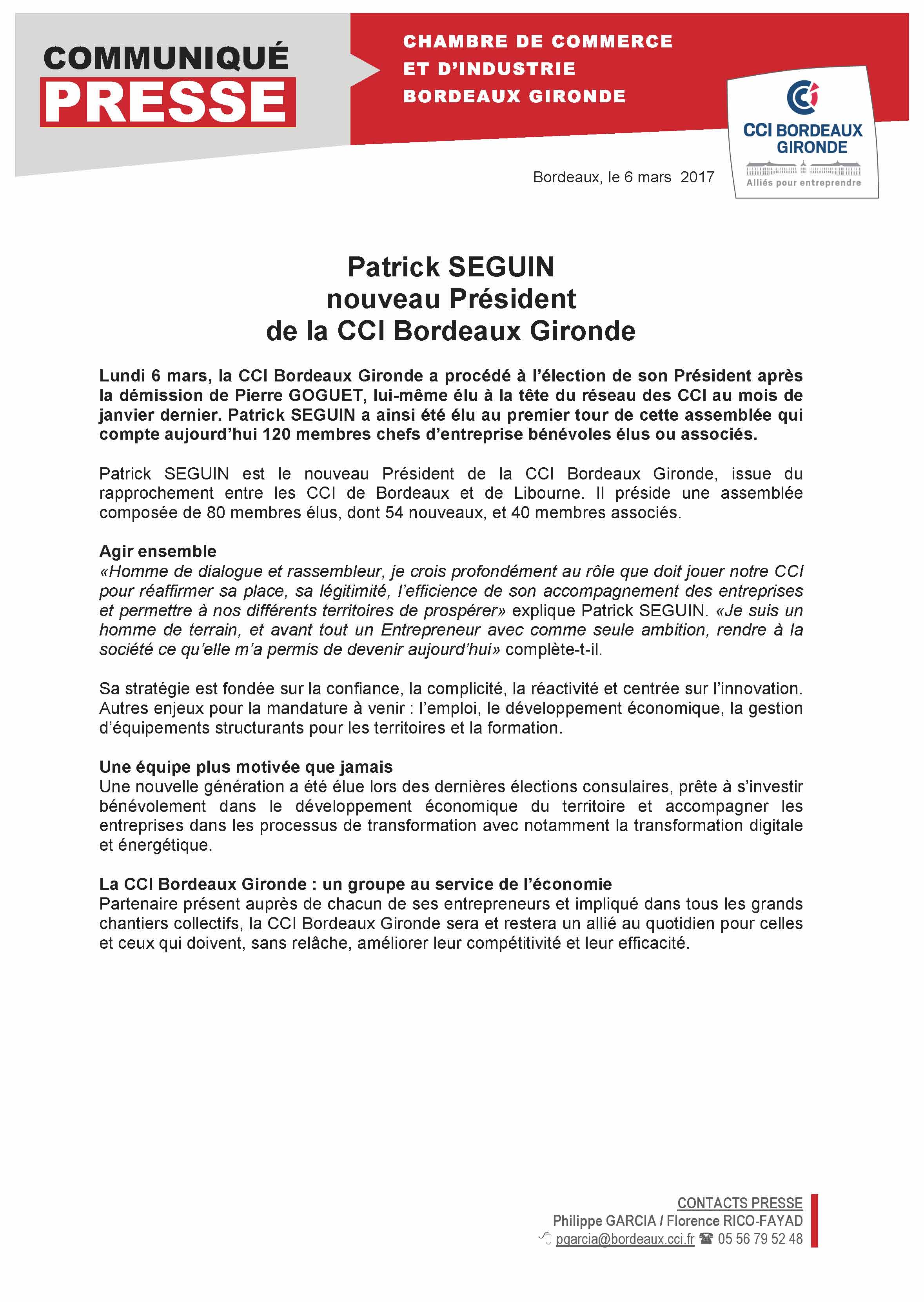 Accueil > Événements > Evénements à l'extérieur > Point presse de Patrick Seguin, nouveau Président de la CCI Bordeaux-Gironde