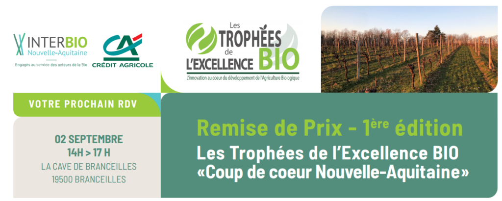 • 15h30 – Remise officielle du Trophée de l’Excellence BIO « Coup de coeur Nouvelle-Aquitaine » à Philippe Leymat, viticulteur bio pour son projet «Vigne biodiversité et agroforesterie au service du carbone