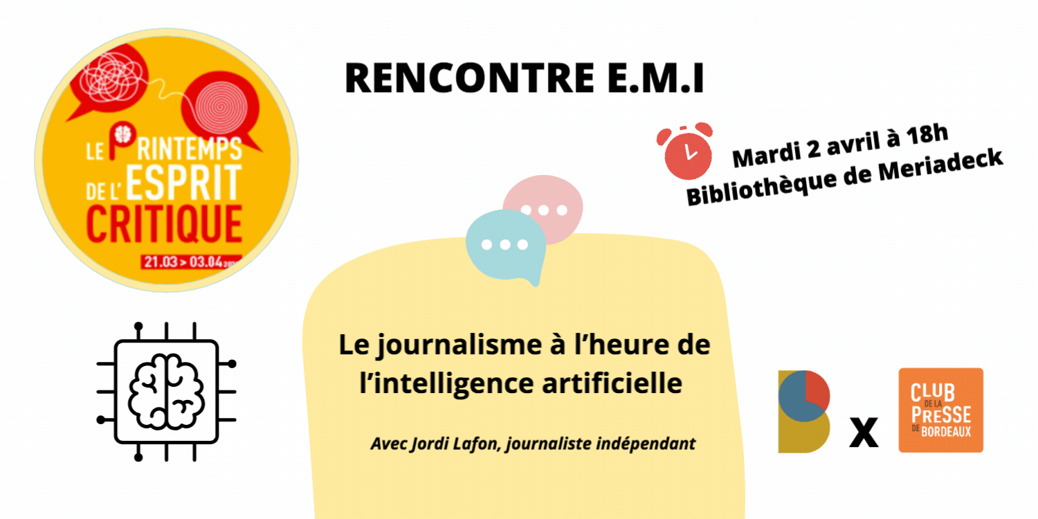 Après « l’info locale et les jeunes », « les coulisses du métier de photographie presse », place au « journalisme et à l’I.A », dans le cadre du printemps de l’esprit critique (du 21 mars au 3 avril) avec Jordi Lafon, membre actif du Club, journaliste indépendant et intervenant à l’école Hautes Études Internationales & Politiques (HEIP) de Bordeaux sur l’histoire de la construction européenne.