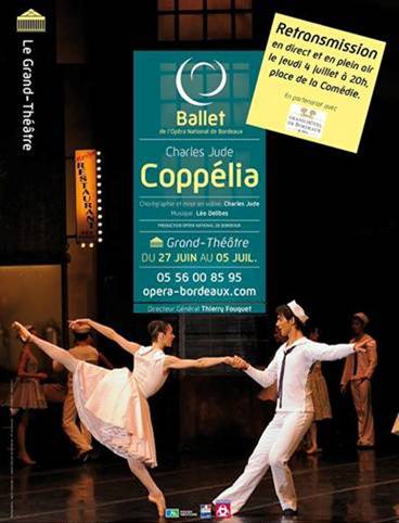 INVITATION L’Opéra National de Bordeaux et le Grand Hôtel de Bordeaux & Spa sont ravis de vous convier à la retransmission sur écran géant du ballet Coppélia, place de la comédie jeudi 4 juillet dès 20h00.