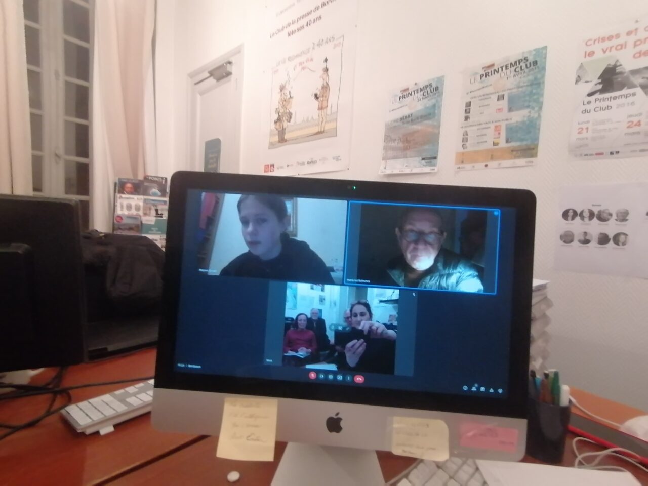 Derrière l’écran, en visio-conférence, Marina D, narre son quotidien depuis ce matin-là. Nous découvrons, depuis le bureau d’accueil du Club de la Presse, non pas une jeune femme apeurée ou perdue mais une résistante de Kyiv, calme, qui répéte son admiration pour son peuple, et scande son espoir : « nous gagnerons ! ».