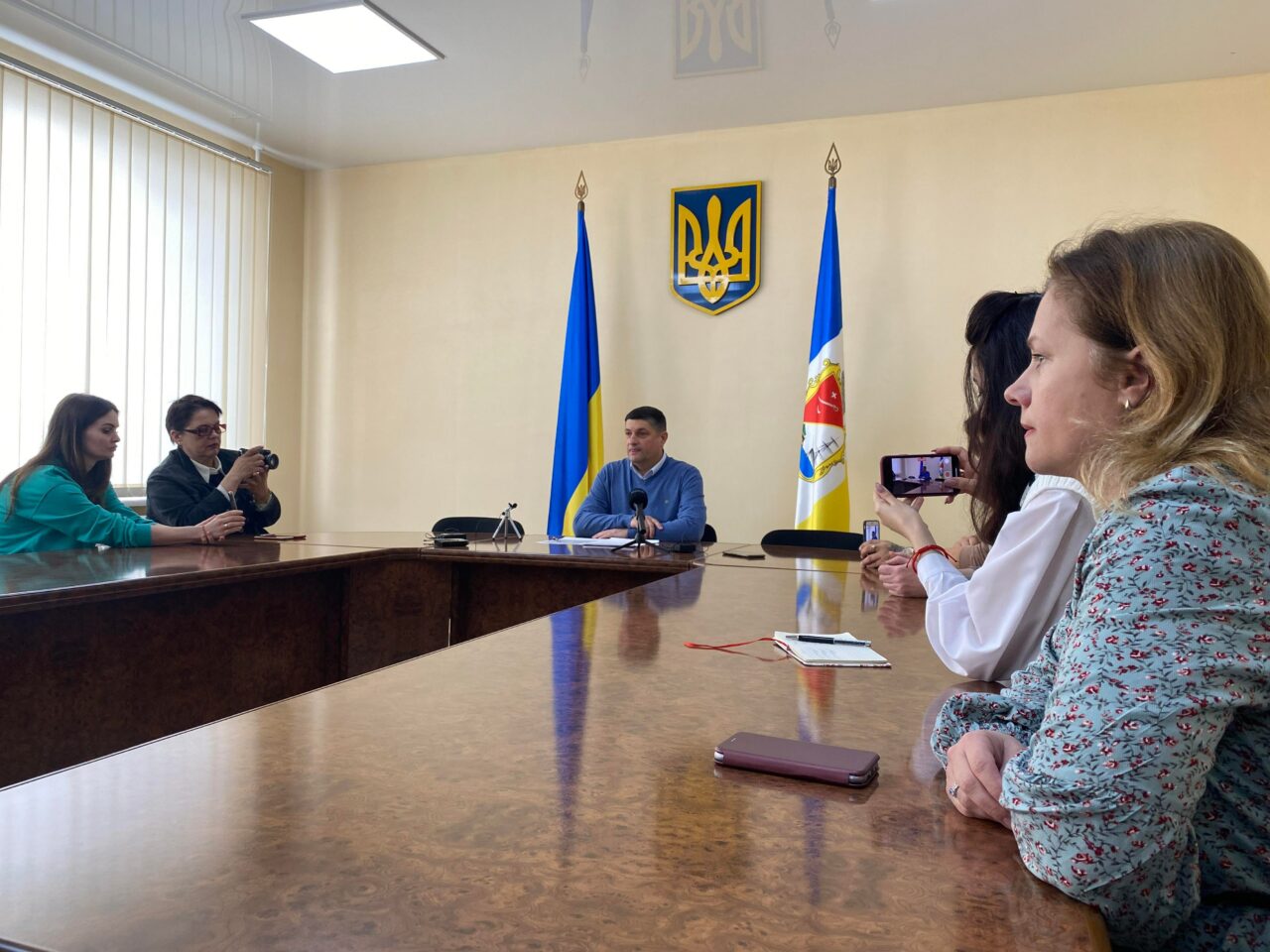 Un peu plus tard, rendez-vous pour « la conf de presse » du maire d’Izmail. Il dit qu’il « attend la guerre ». Sereinement ou presque. Précision : les journalistes ne peuvent pas filmer les installations militaires, ou les milices qui travaillent dans la région. Interdiction. D’ailleurs, c’est très compliqué de faire des images ici. Les militaires ukrainiens contrôlent tout et nous n’avons pas le droit de les filmer ou de les photographier.