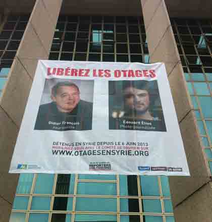 La Région Aquitaine soutient les journalistes otages en Syrie   A l’occasion de la journée du 6 septembre dernier, dédiée à Didier François et Edouard Elias, envoyés spéciaux d’Europe 1 enlevés il y plus de 3 mois en Syrie, une bâche avec leurs portraits a été installée sur la façade de l’Hôtel de Région. Elle lire la suite
