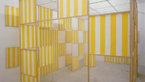 Autant de questions que Daniel Buren pose également à partir de 1965 à l’aide d’un « outil visuel » qui l’a fait largement connaître : des rayures de 8,7 cm de large alternativement blanches et colorées disposées de façon à chaque fois différente dans les sites qui les accueillent.