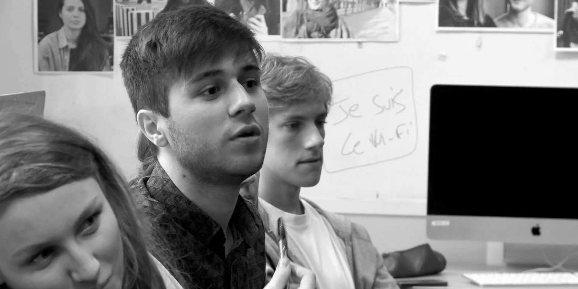 L’équipe du documentaire a suivi des apprentis reporters du Centre de Formation des Journalistes (CFJ) à Paris pendant leur année scolaire, bouleversée par les attentats du Bataclan.
