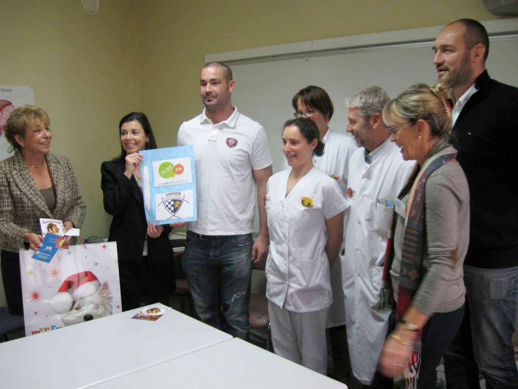 les représentants du Club, la présidente de l’Association Prim@, les responsables hospitaliers, attendaient leur Père Noël :