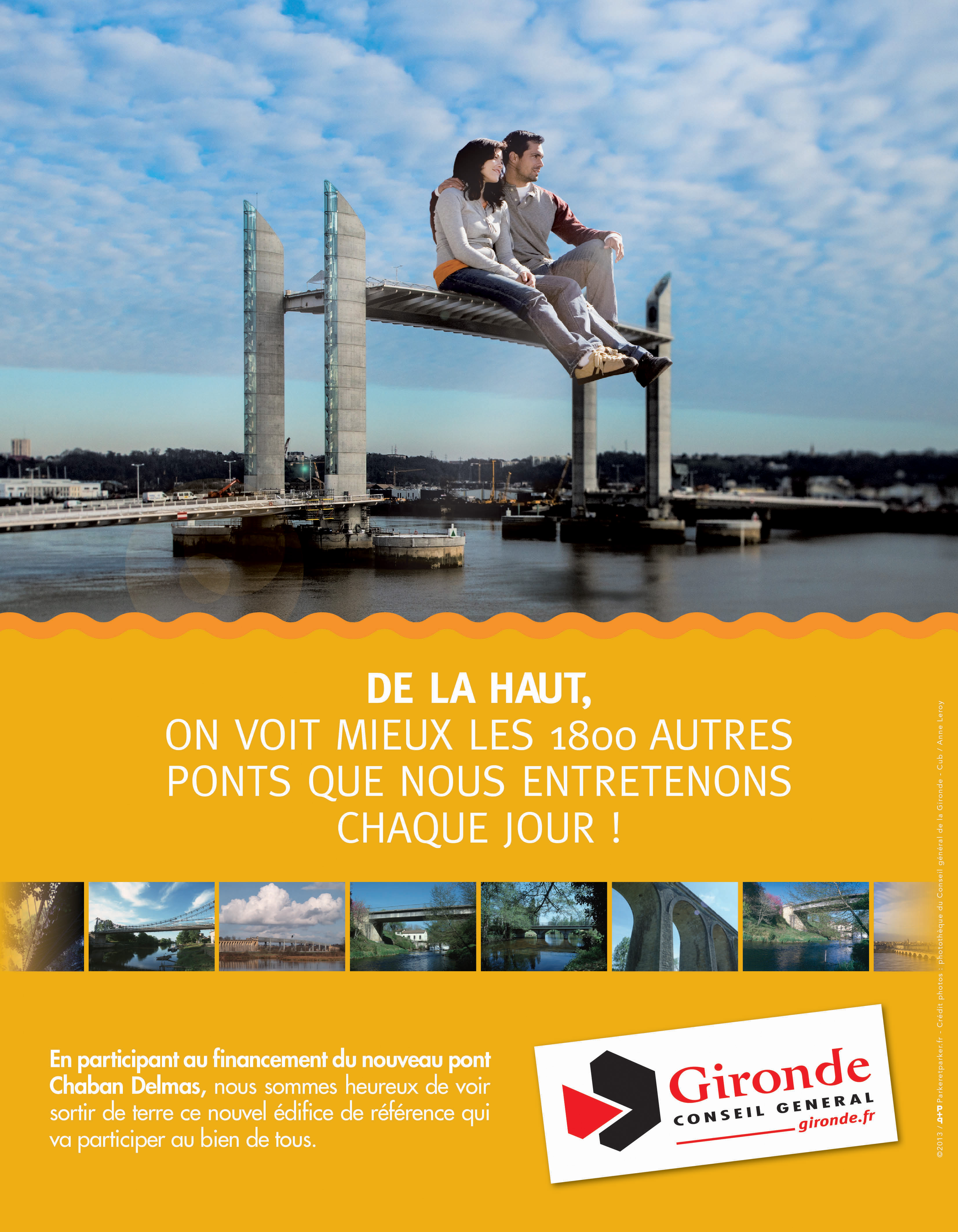 En participant au financement du nouveau pont Chaban-Delmas à hauteur de 18 M€, le Conseil général de la Gironde est heureux de voir sortir de terre ce nouvel édifice de référence qui va participer au bien de tous.