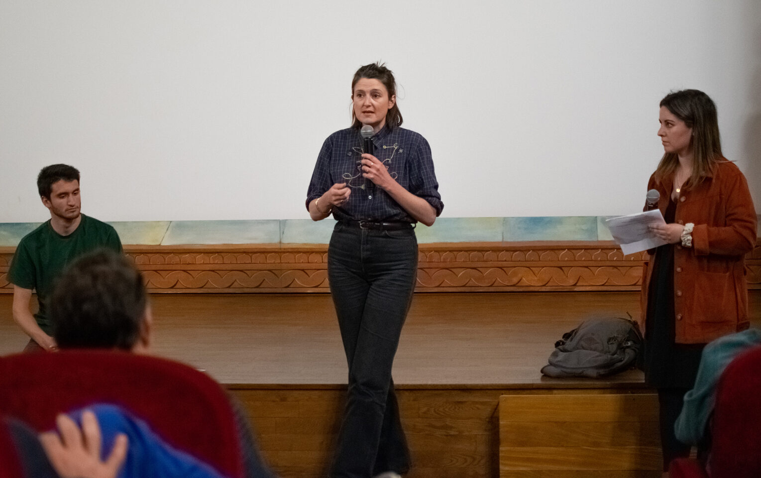 Photo : Valentine Oberti, coréalisatrice de Media Crash, entourée d’Eva Fonteneau, journaliste et vice-présidente du Club, ainsi que Maxime Giraudeau, journaliste et président du Club Junior.