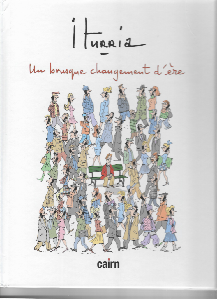 « Je viens de lire un article sur l’obsolescence programmée… Je suis profondément indigné !… Surtout par la mienne… ». C’est le texte du premier dessin de l’ouvrage, qui montre un personnage s’adressant au Ciel, devant la mer et des rayons de soleil. Il ne faut pas en conclure pour autant que Michel Iturria, journaliste à la retraite mais dessinateur toujours actif à Sud Ouest Dimanche et au Mag, serait gagné par une certaine désespérance. Au contraire : après les “Rubipèdes“ qu’il a sorti en synthèse de deux ouvrages il y a un mois, voici “Un brusque changement d’ère“. Un vaste panorama de l’actualité contemporaine, avec toujours cet humour à la fois raffiné, profond, et le ton de la farce.