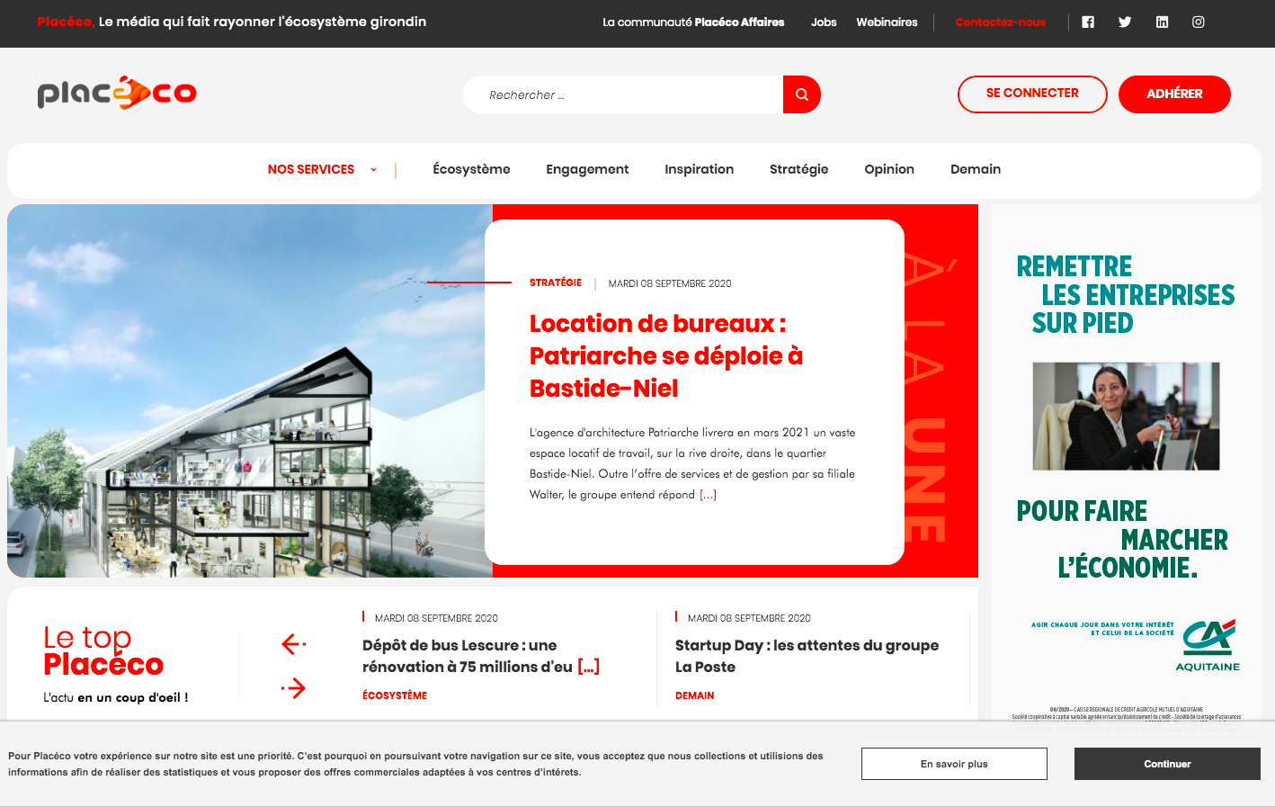 Yann Buanec, ancien responsable d’édition du Journal des Entreprises Gironde, est aujourd’hui président de Bordeaux Médias, la société éditrice de Placéco. Il conclut : « Placéco a vocation à devenir la place où se retrouvent tous les acteurs de l’écosystème girondin : ceux qui ont un besoin de produit ou service et ceux qui peuvent répondre à ce besoin, ceux qui cherchent un travail et qui ceux qui souhaitent embaucher et ceux qui souhaitent se former et ceux qui délivrent une expertise ».