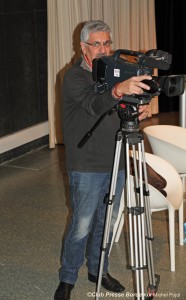 Les représentants des groupes et titres de presse de Pyrénées Presse, La Montagne, Sud Ouest, l’Est Républicain, Ouest France, Courrier de l’Ouest, Le Maine Libre, Presse Océan, la Charente Libre, la Provence, Nice Matin. A la caméra, Jean-Michel Destang, grand reporter.