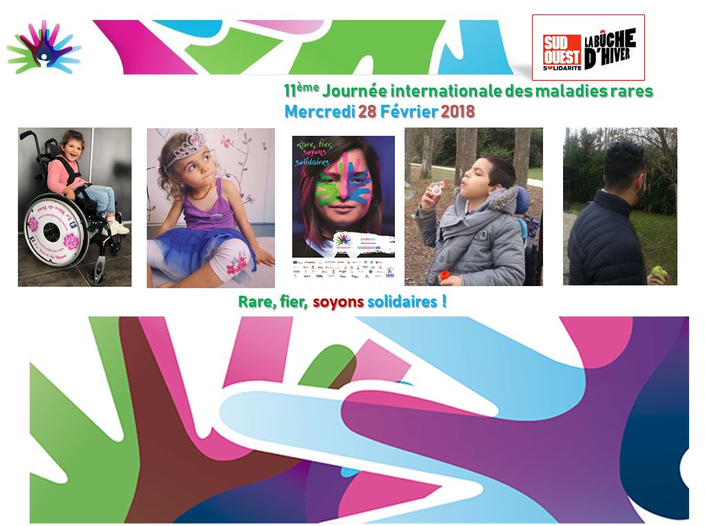 Le 28 fĂ©vrier 2018, Ă lâoccasion de la 11Ăšme JournĂ©e internationale des maladies rares, Sud-Ouest SolidaritĂ© a souhaitĂ© illustrer son engagement dans ce domaine depuis 4 ans Ă travers Rose, Lia, Alexandre et Arthur.