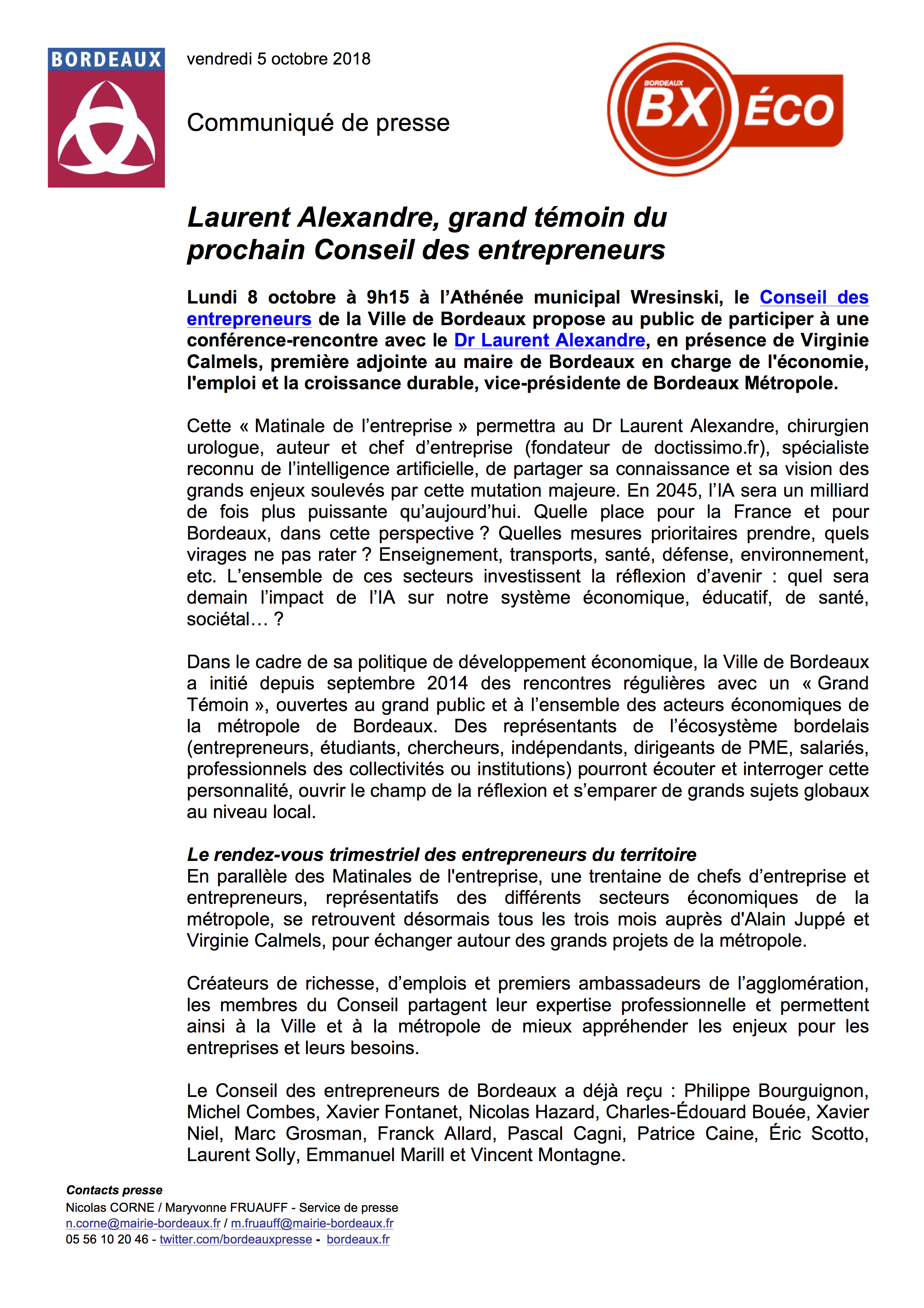 Accueil > Communiqués > 08/10 – Laurent Alexandre, grand témoin du Conseil des entrepreneurs de Bordeaux