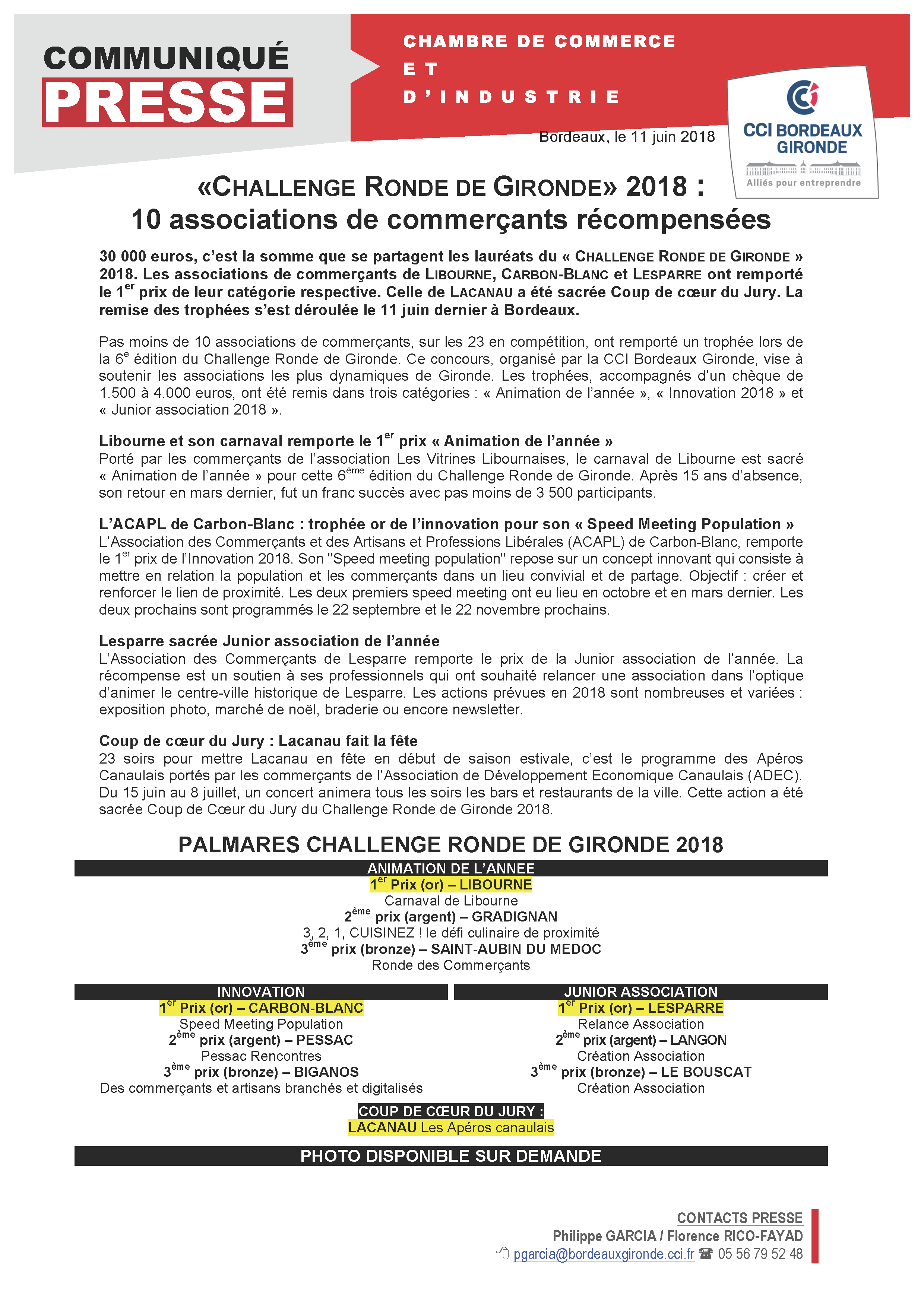 Accueil > Communiqués > 10 associations de commerçants lauréates du Challenge Ronde de Gironde 2018