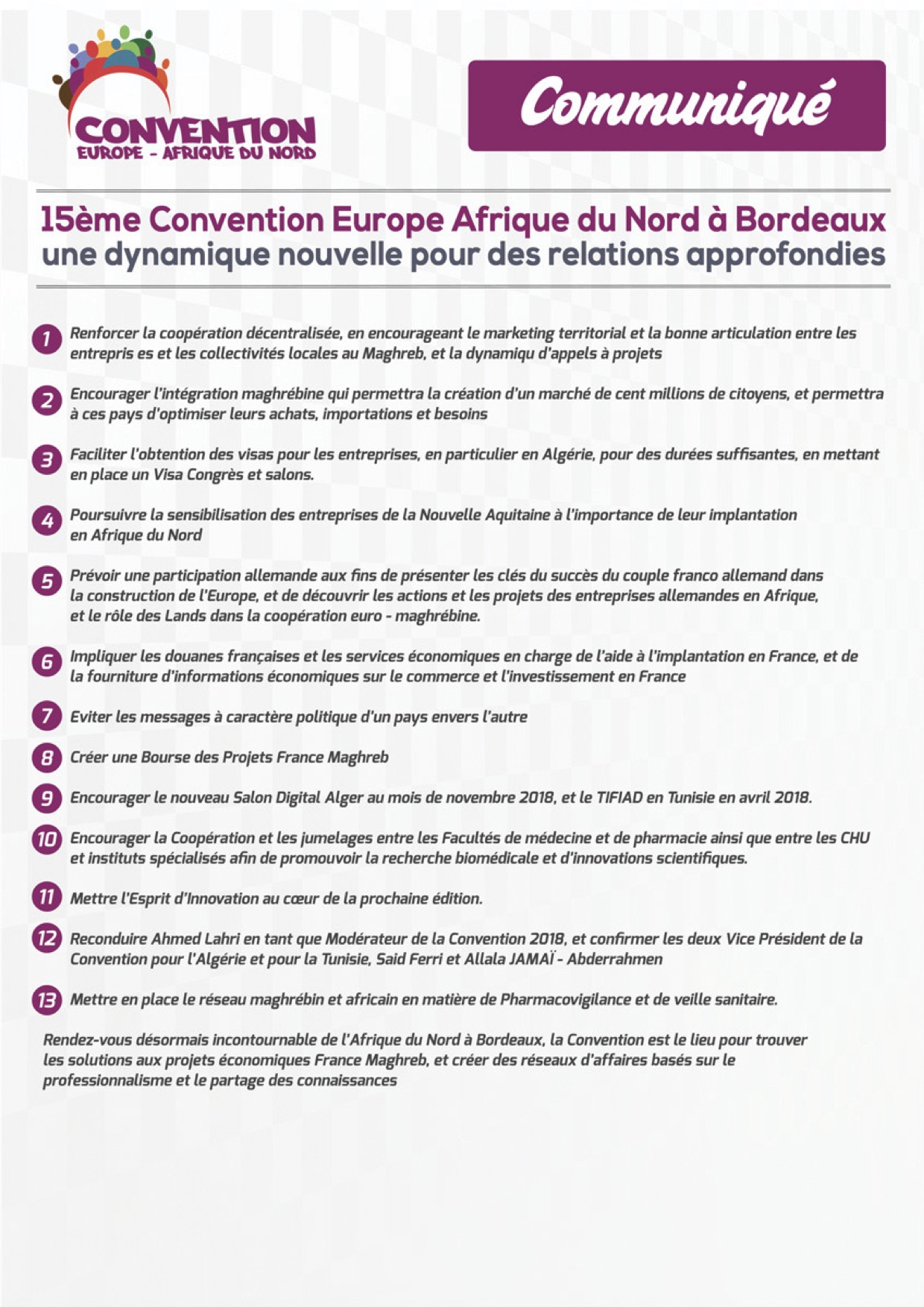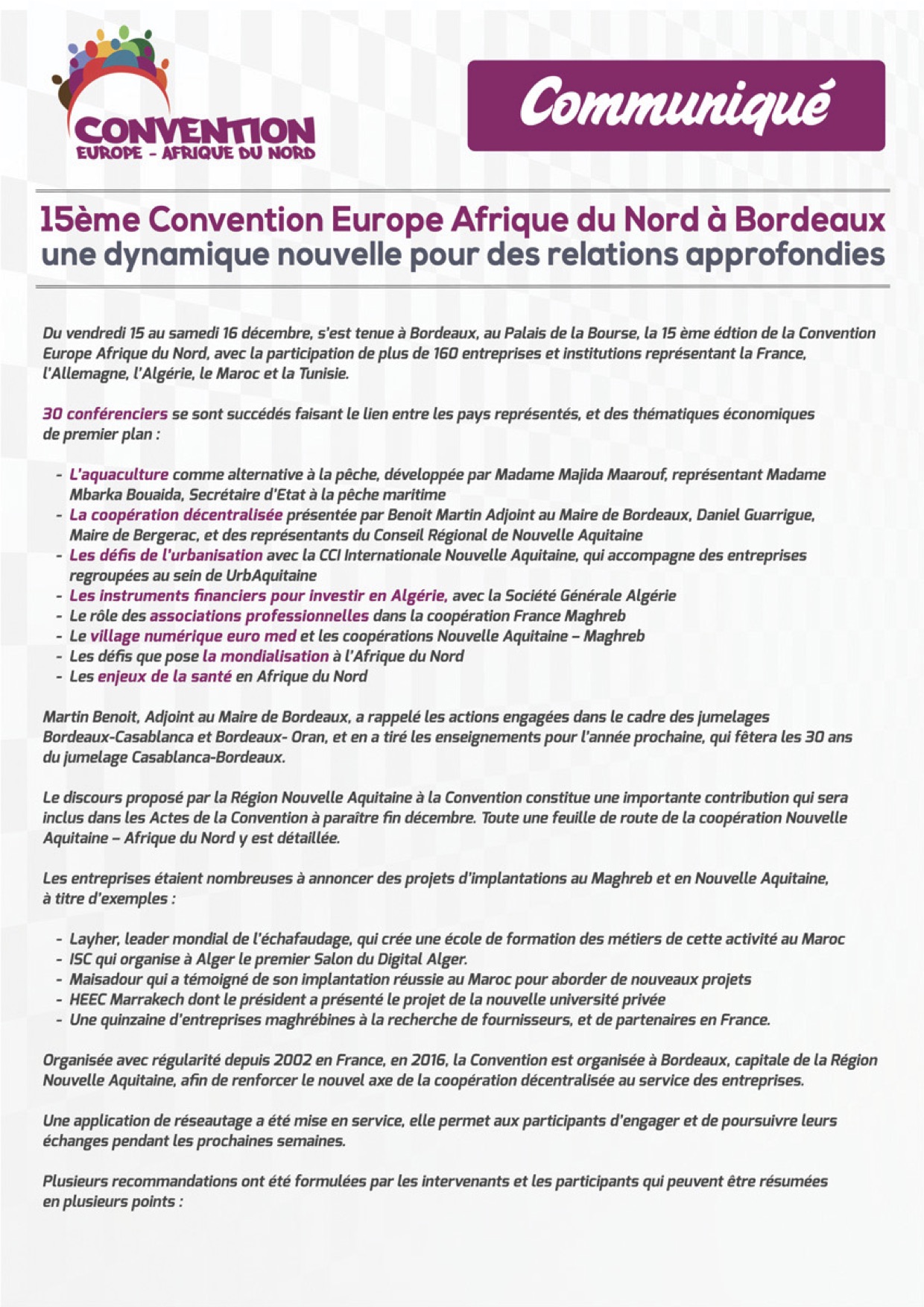Accueil > Communiqués > 15ème Convention Europe Afrique du Nord