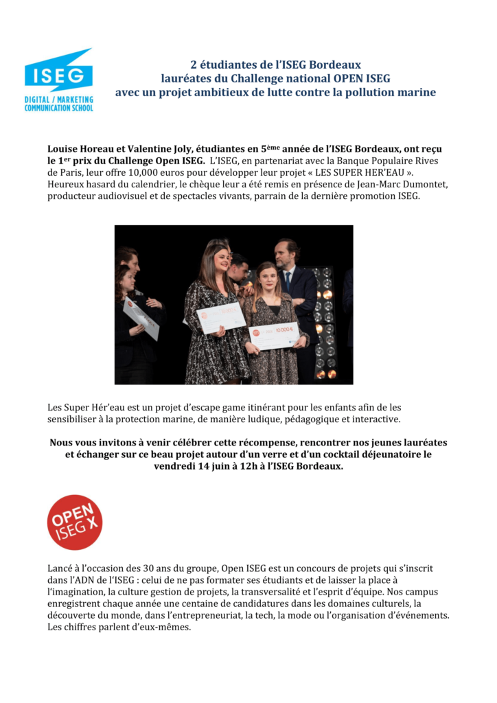 Accueil > Communiqués > 2 étudiantes de l’ISEG Bordeaux lauréates du Challenge national OPEN ISEG