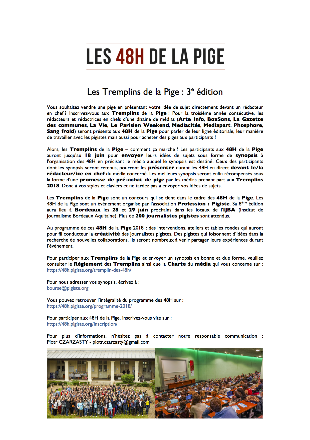 Accueil > Communiqués > Les 48H de la Pige – Tremplins 2018 – Envoyez vos synopsis !