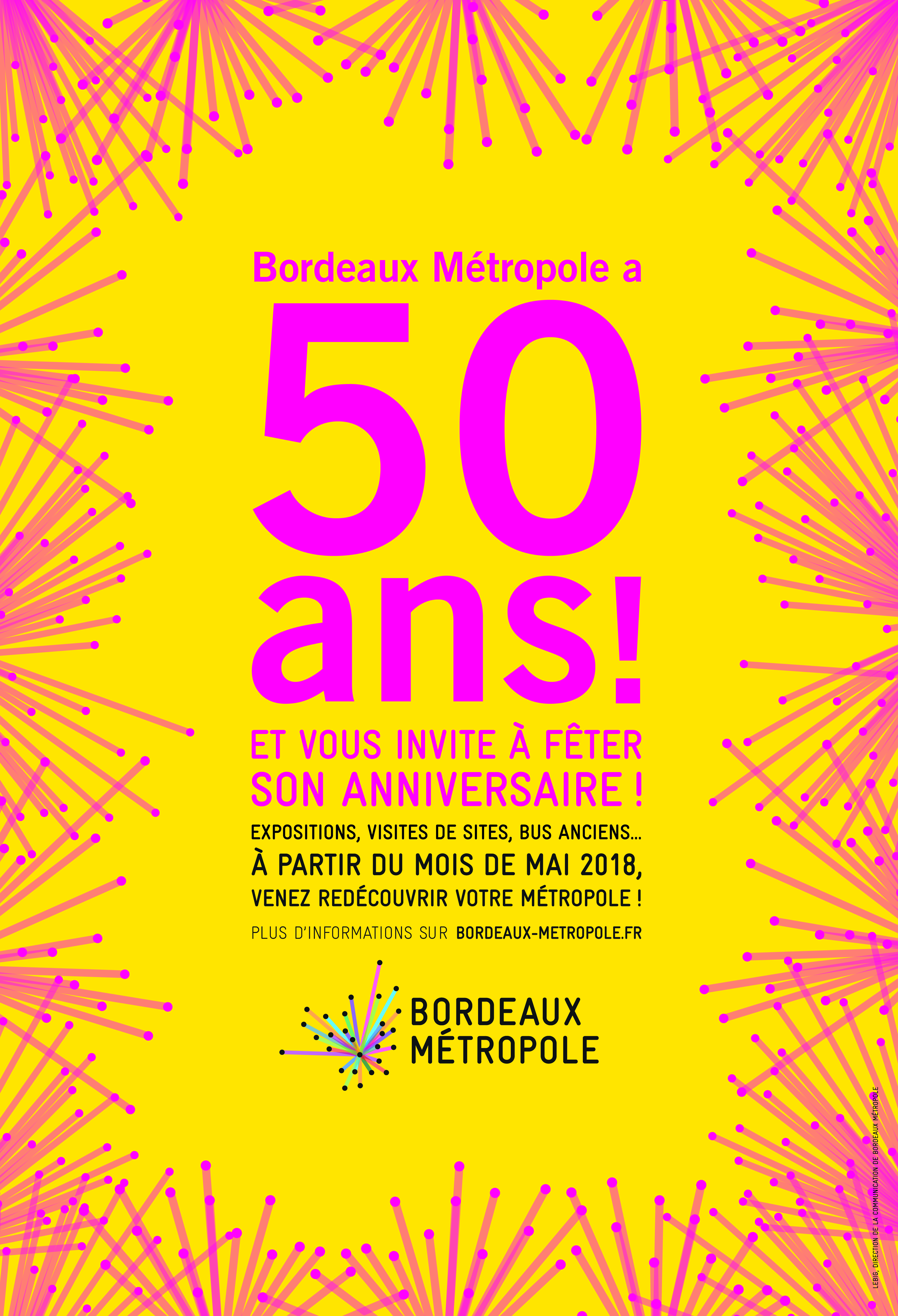 Bordeaux Métropole souffle cette année ses 50 bougies et propose, pour l’occasion, un bouquet de rendez-vous festifs : visites de sites, expositions… Le programme complet est à retrouver ici :