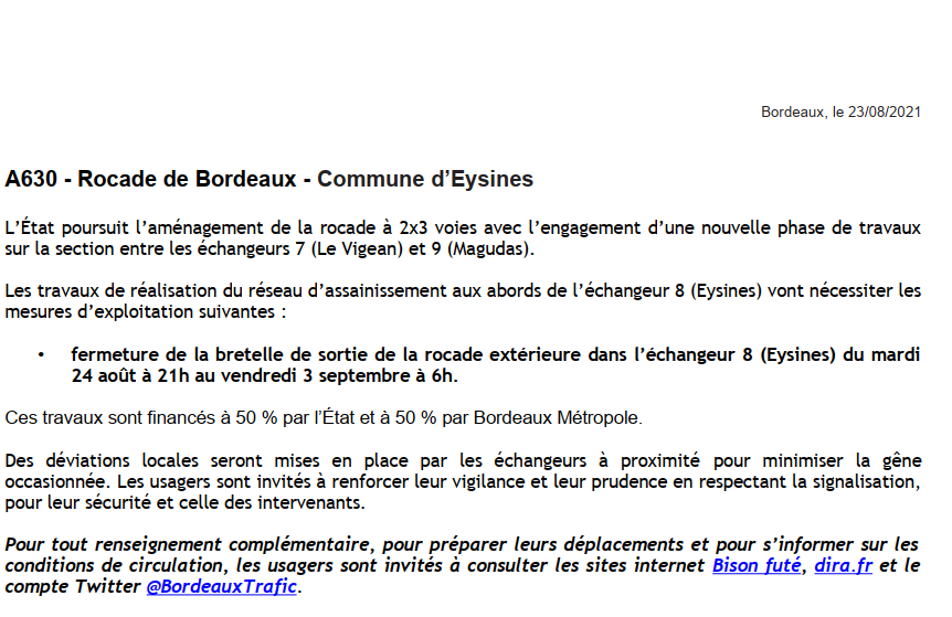 2021-08-23 CP A630 – Rocade de Bordeaux – Commune d’Eysines