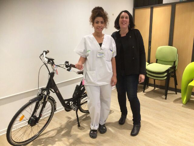 – la remise du vélo à assistance électrique à l’infirmière du CHU de Bordeaux participante au dernier Challenge de la Mobilité.