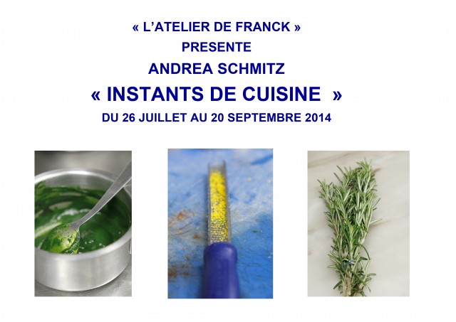J’ai le plaisir de vous annoncer que j’expose de nouveau ma série « Instants de cuisine » au restaurant « L’Atelier de Franck – 80, quai des Chartrons – 33000 Bordeaux, du 29 juillet au 20 septembre 2014, ouvert du mardi au samedi, midi et soir ! ( il aura une petite pause « vacances » du 10 au 25 lire la suite
