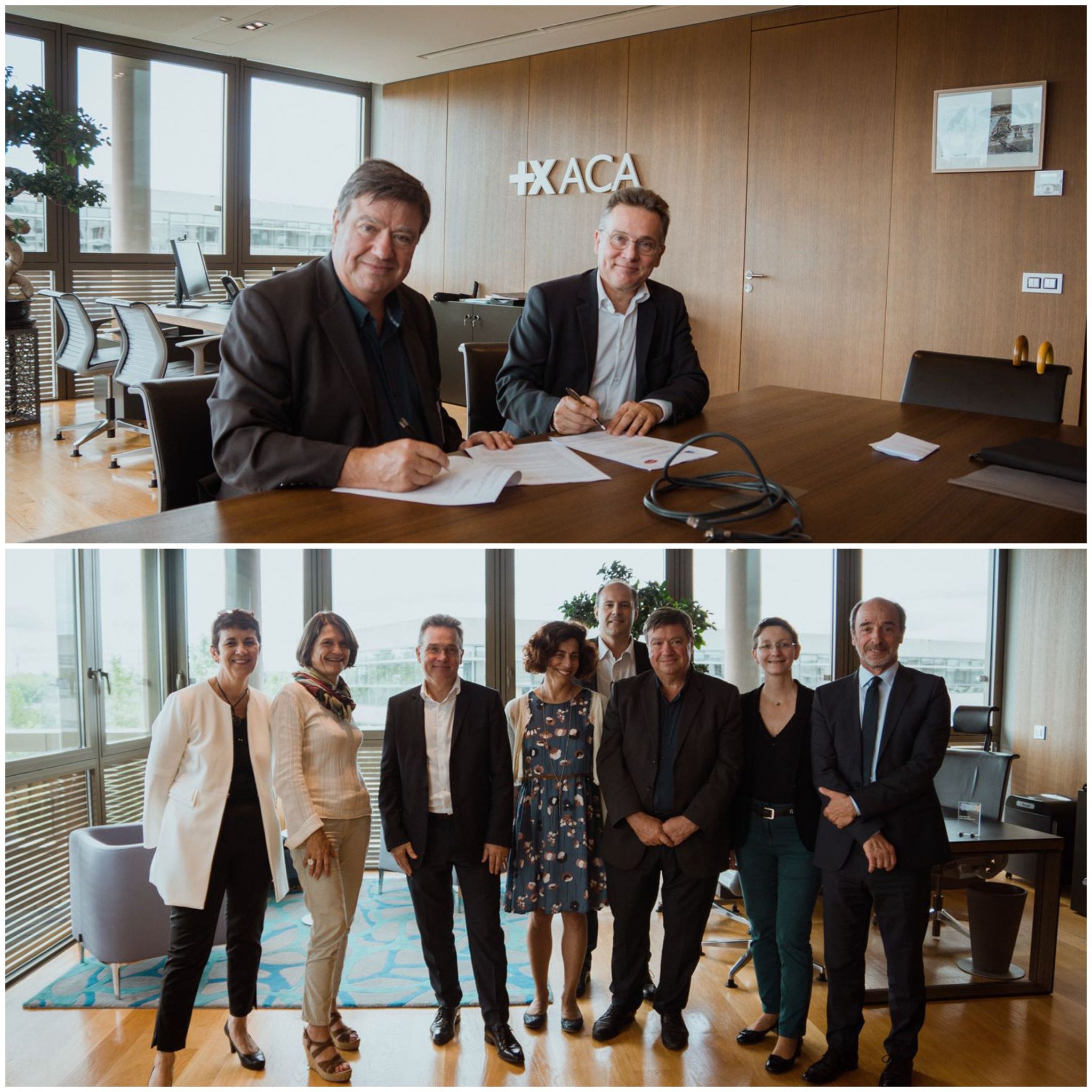 Photographie n°1 : Didier Roux, Président d’Unitec & Christophe Bourdais, Directeur Entreprises et Filières Locales de la BPACA [les signataires] Photographie n°2 : les équipes de la BPACA & UNITEC réunies avec le sourire à l’occasion du renouvellement de l’accord