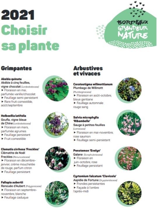 Pour celles et ceux qui le souhaitent, la ville propose de fournir des plantes adaptées pour les mini fosses, parmi :