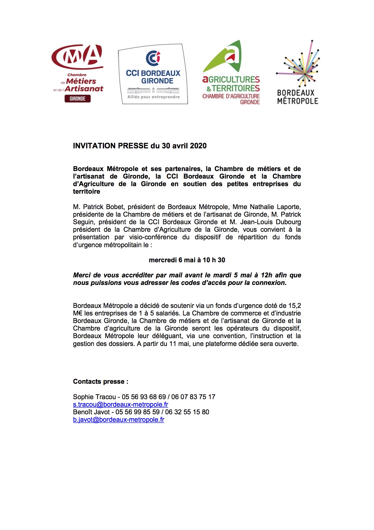 CP Invitation presse Soutien éco 30.04.2020