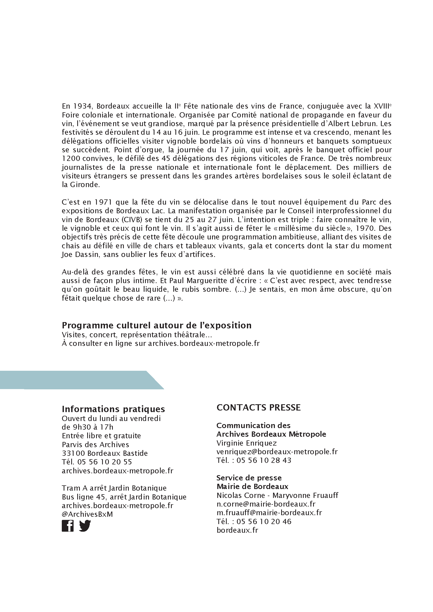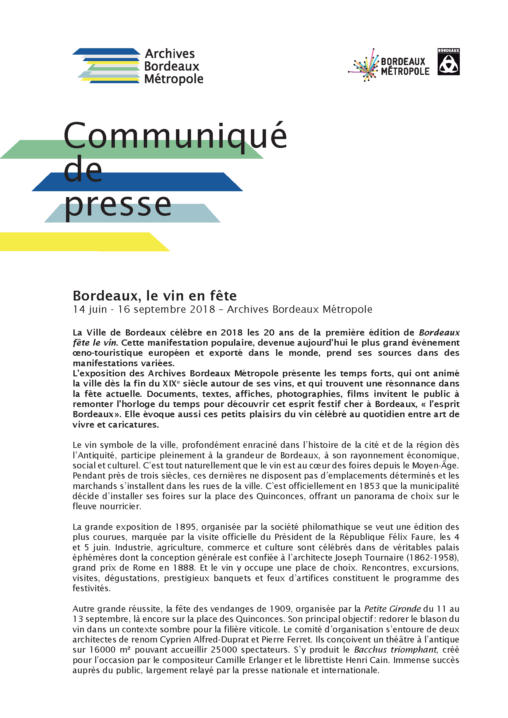Accueil > Communiqués > Bordeaux, le vin en fête – Archives Bordeaux Métropole