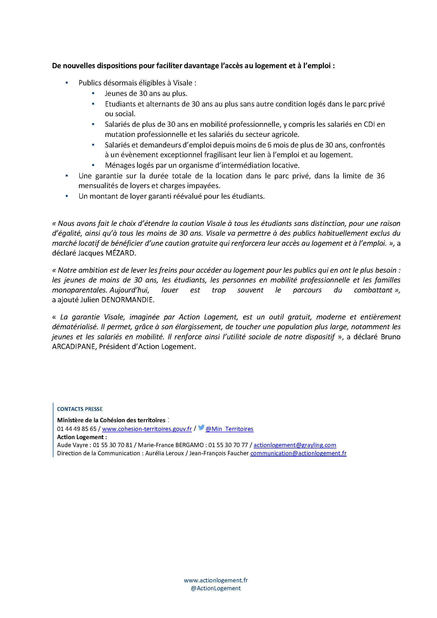 Accueil > Communiqués > La caution Visale d’Action Logement évolue