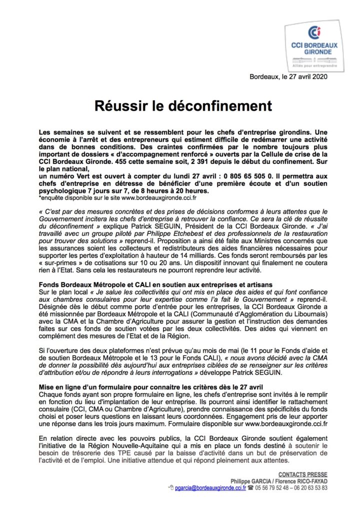 Accueil > Communiqués > CCI Bordeaux : Réussir le déconfinement