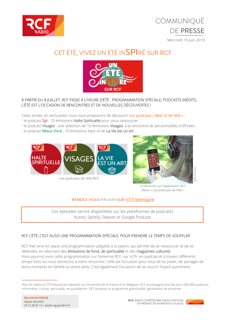 Accueil > Communiqués > Cet été, vivez un été inspiré sur RCF