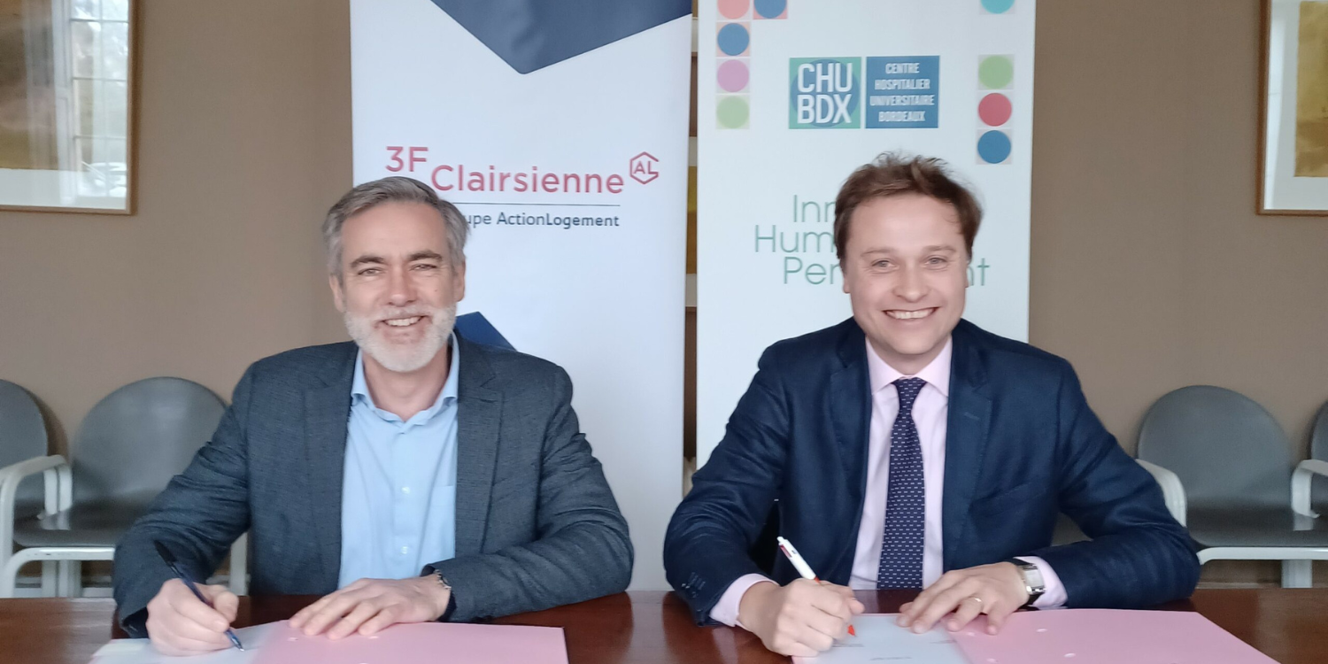 Vendredi 8 mars 2024, M. Jean-Baptiste Desanlis, directeur général de Clairsienne et M. Alexis Thomas, directeur général par intérim du Centre Hospitalier Universitaire de Bordeaux ont signé une convention de partenariat au profit du logement du personnel hospitalier de la métropole bordelaise.